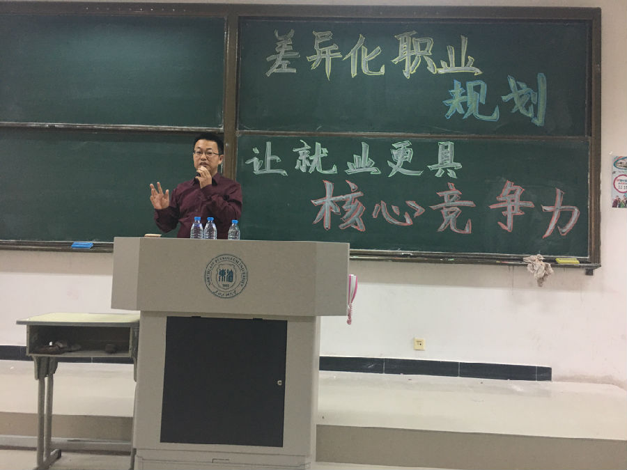 5月12日,2138cn太阳集团城邀请老男孩教育创始人冉宏元先生在主教C座401教室作了主题为《差异化职业规划,让就业更具核心竞争力》的报告。此次报告由我院王业贤书记主持,前来聆听报告的师生近百人。
