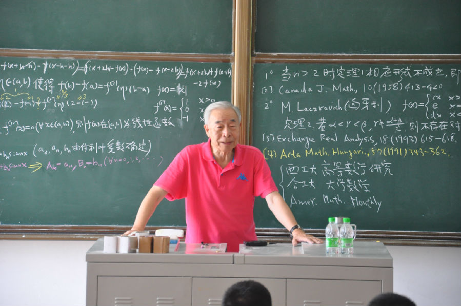 这位白发苍苍、而依旧神采奕奕、精神矍铄的老教授已是80高龄了,仍然坚持要站着给大家作报告,在场的每位师生都很感动。报告中,吴从忻教授从一道80年代西安交通大学的硕士试题说起,追本溯源,用通俗易懂、形象生动的语言为同学们系统地讲述了导数的发展史,并由此引出对称导数定义的引入和应用。吴教授不仅为师生们讲解了科学研究的思想及方法,他的那种对科学的探索精神更是深深感染了每一位师生。此外,吴从忻教授鼓励同学们要多读英文文献并推荐了相关的数学期刊。