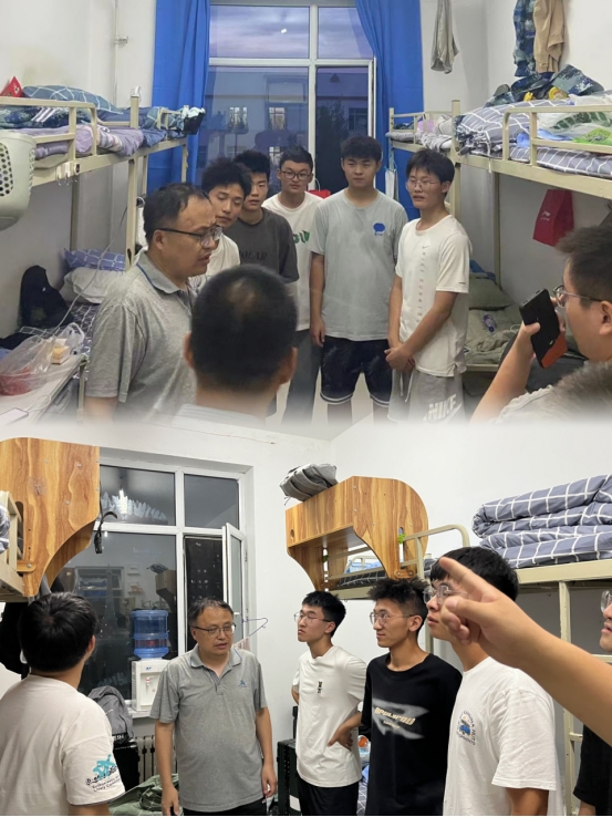 走访过程中,院领导老师们十分关心同学们的学习生活情况,每到一个宿舍都和寝室的孩子拉家常,详细了解学生开学前的准备和心理状态,掌握学生入校后的具体情况,细心询问学生在宿舍生活中遇到的问题,对学生的需求、困难和困惑一一进行答复,并悉心叮嘱同学们:“树立安全意识,调整生活作息,合理安排时间并做好新学期的学习规划,以积极的态度、崭新的面貌投入到新的校园生活与学习中来。”同时鼓励新生们要积极参与校院组织的各项活动,努力拓宽视野,提升自身素质,争做德智体美劳全面发展的大学生。