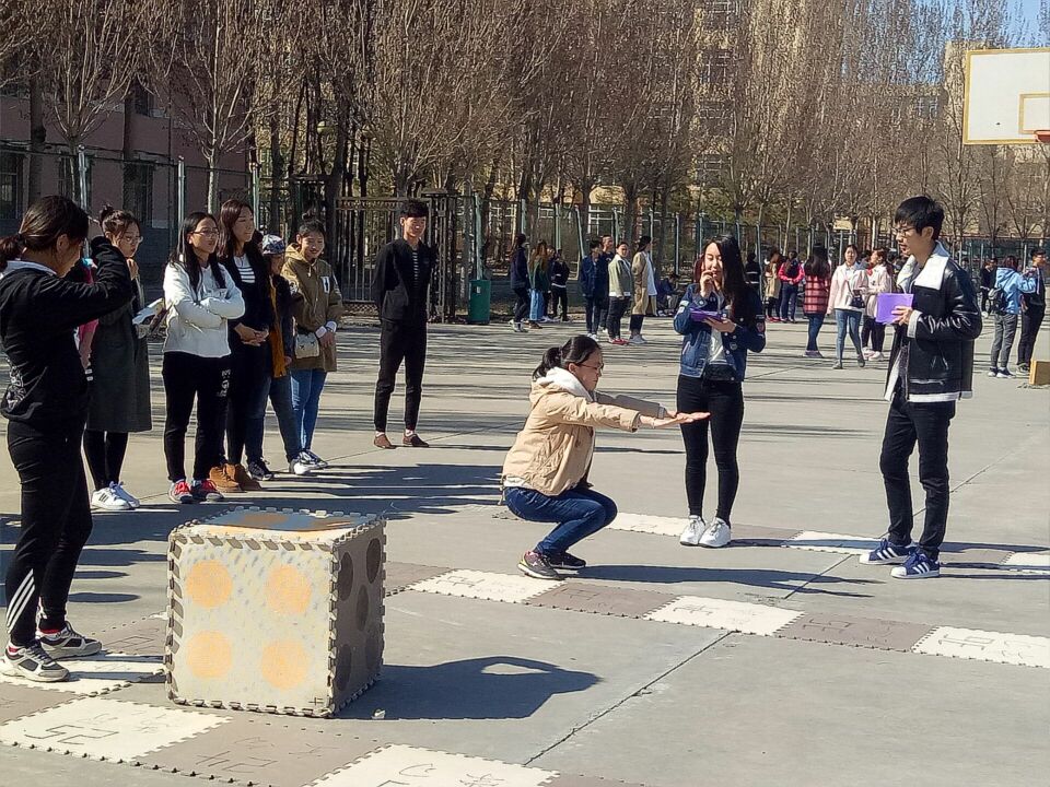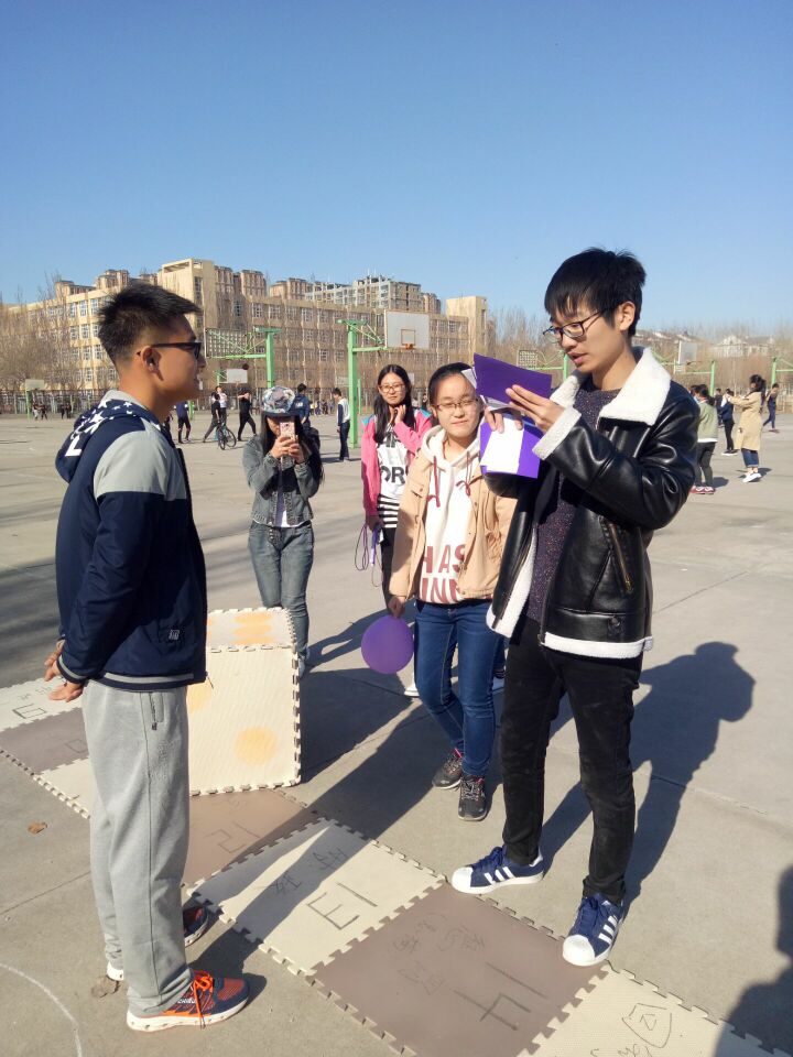 201年4月9日下午1:30,由2138cn太阳集团城学生会外联部主办、2138cn太阳集团城团委承办的真人飞行棋大赛在2138cc太阳集团篮球场正式举行。大一大二的同学们都积极踊跃地参加,比赛现场气氛高涨,参赛选手和观众都能有秩序的配合比赛的进行。